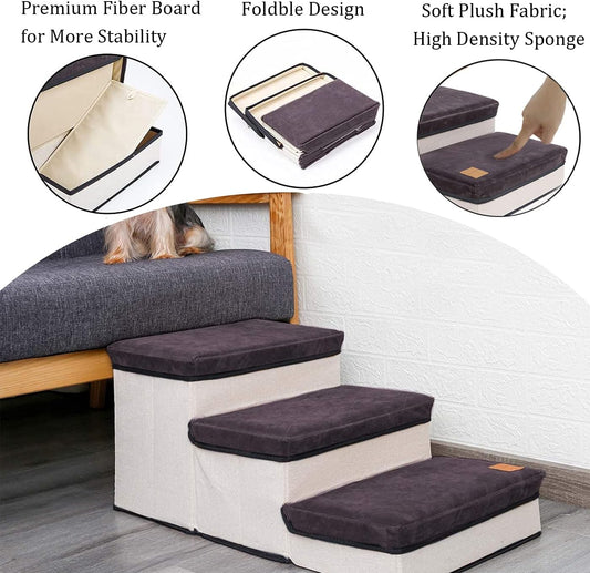 Dog Stairs Steps, Foldable Pet Stairs Dog Steps for High Beds, 3-Layer Pet Storage Stepper Pet Steps for Small Dogs Cats (Dark Grey)