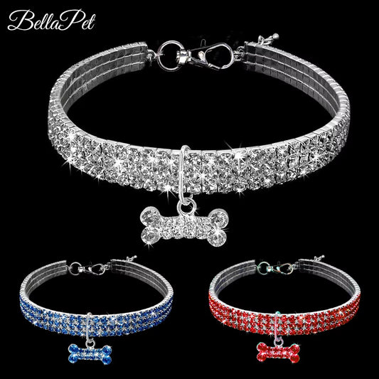 1Pcs Luxury Dog Collar for Big Small Dog Luxuryglitter Jeweled Bone Pendent Luxury Elastic Crystal Dog Collar Dog Accessories