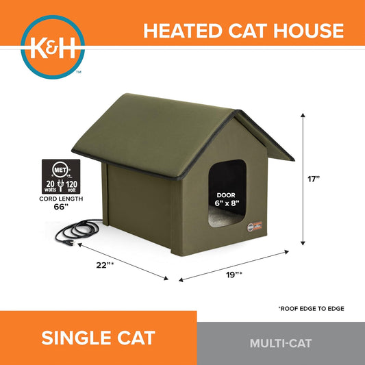 Heated Outdoor Cat House for outside Pets in Winter, Weatherproof Outdoor House for Ferals, Insulated Kitty Shelter, 2 Doors, Waterproof Heated Cat Bed, Safety Listed - Olive/Olive
