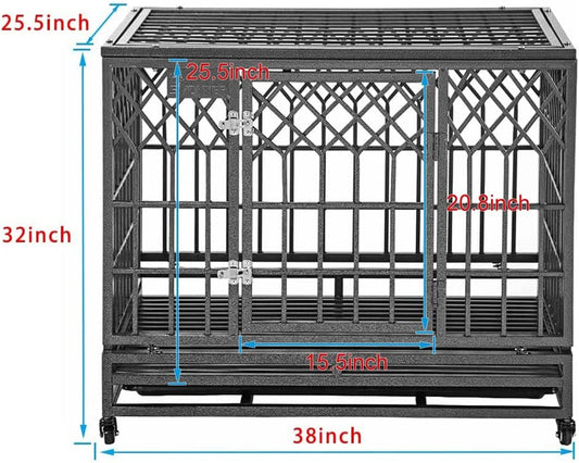 Heavy Duty Dog Cage for Large Dog Strong Metal Kennel and Crate Pet Playpen with Three Doors, Four Wheels,38 Inch,Y Shape,Silver … … …